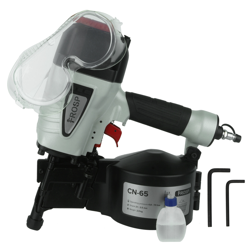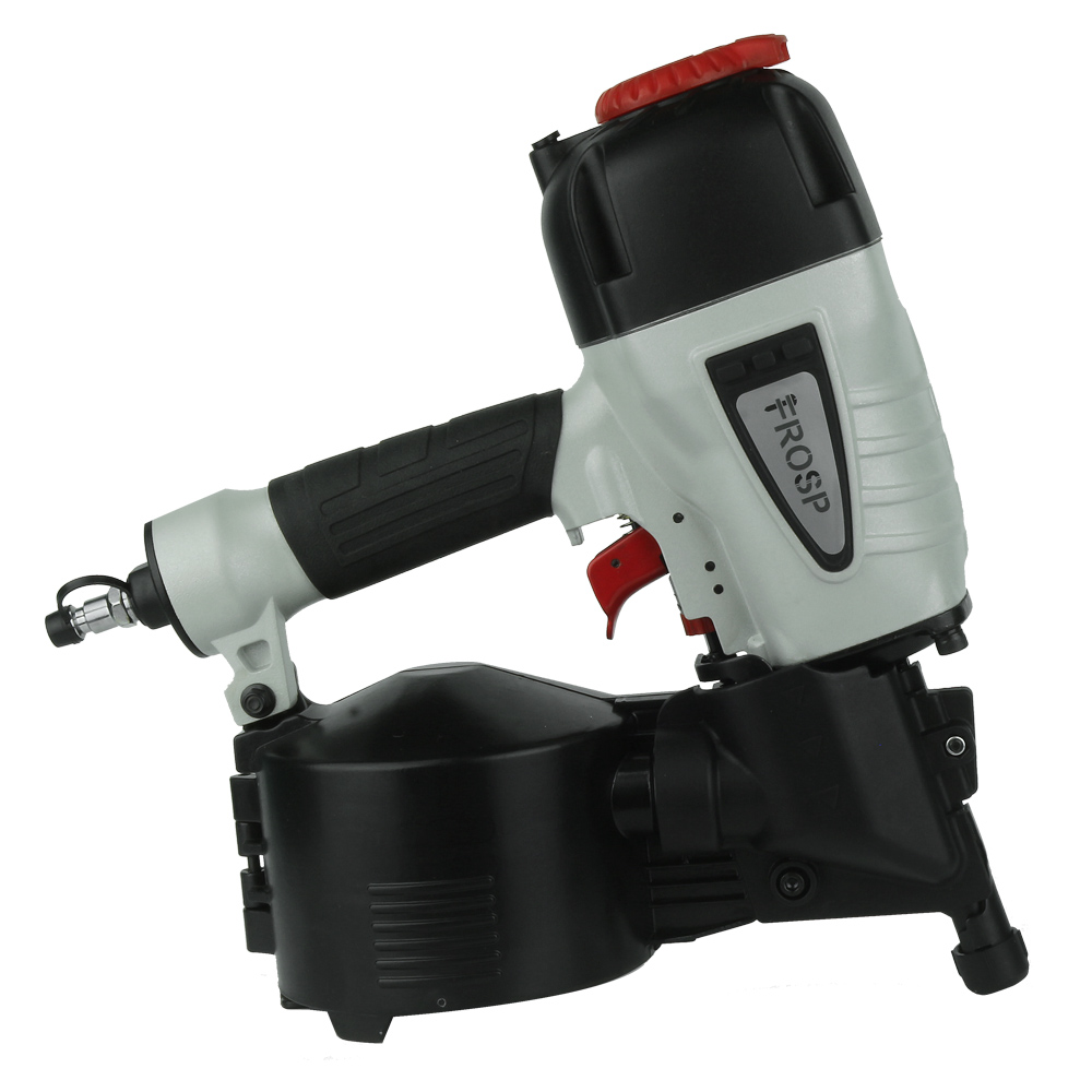 Пневматический барабанный гвоздезабивной нейлер FROSP CN-65 отлично подходит для кровельных работ по дереву, в том числе монтаж мягкой кровли, ремонте и изготовлении других деревянных конструкций. Забивает гвоздь длинной 32-65 мм и диаметром 2,1-2,5 мм. Емкость барабанного магазина 200-300 гвоздей, а угол наклона крепежа 15.